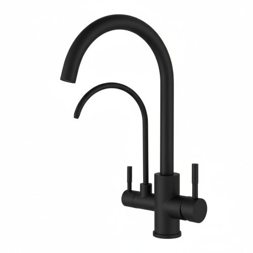 Welland Rialto 3 utas csaptelep kihúzható többfunkciós fejjel, valamint elkülönített, beépített második csapteleppel a tisztított víz számára. Nagy tartósságú fekete porfestett felülettel, amivel egy kortalan de mordern formatervezés párosul.