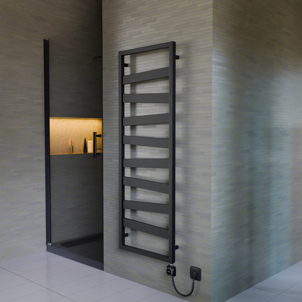 NERO Italia design radiátor 50 x 140 cm-es méretben, fekete színben. Enyhén döntött szögben kialakított vízsztintes elemek, mozgalmas egyedi esztétikai élmányt nyújtanak. Kiemelkedő minőségű design radiátor, a legjobb alapanyagok felhasználásával, precíziós hegesztéssel, magas gyártási minőségben előállított fűtőtest, nagy tartósságú porszórt festéssel. A készlet tartalmazza a felszereléshez szükséges rögzítőket, konzolokat és dugókat.