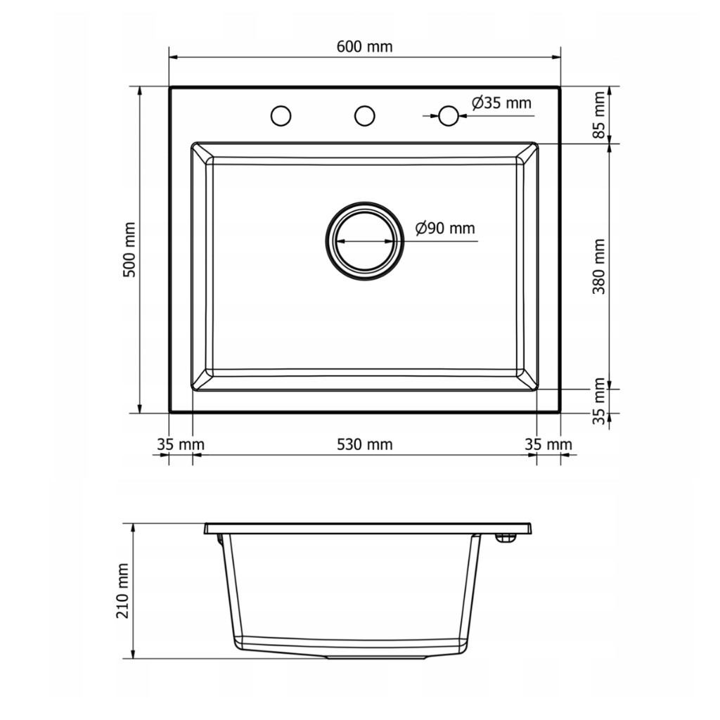 Hosszúság: 60cm (balról-jobbra)Szélesség: 50 cm (peremtől a fal felé)Medence mélysége: 20 cmMedence mérete: 53 x 38 cmSúly: 16 kgSzükséges mosogatószekrény szélesség: 60 cm