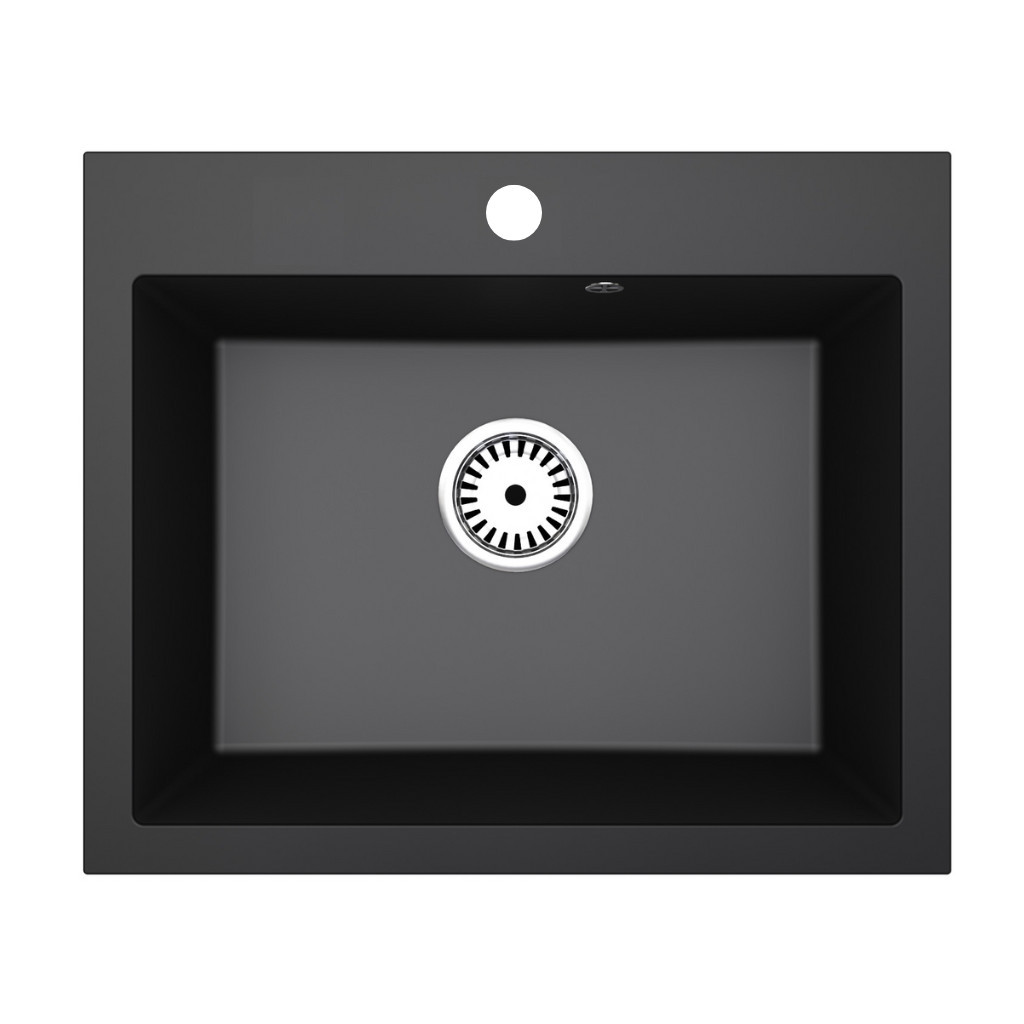 NERO Piazza-60 gránit mosogató, méretes medencével. praktikus kialakítás, 20 cm mély mosogató medencével. Letisztult, szögletes formatervezésének köszönhetően bármilyen stílusú konyha tökéletes alkotóeleme lehet, beépíthető 60 cm széles vagy szélesebb bútorszekrényekbe. Összetétele 80% gránit őrlemény és 20% akril, ami megfelel a szabvány gránit mosogató összetételnek.