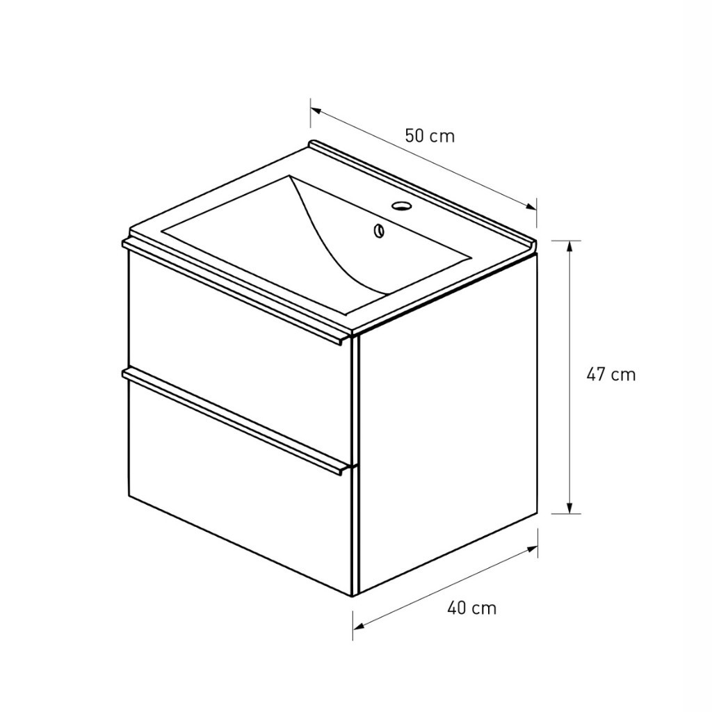 A csomag része egy Welland Y814 fürdőszobai alsószekrényre telepíthető mosdókagyló. Túlfolyóval rendelkező modell, hátsó peremmel és a csaptelep számára kialakított lyukkal. A 16.5 cm-es teljes mélység kényelmes használatot biztosít, emellett helyet hagy a mosdószekrényben tárolt tárgyak számára is.