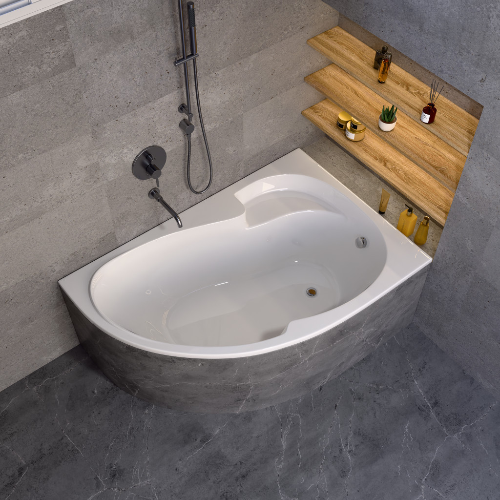 Welland Vigo akril sarok fürdőkád, ergonómikusan kialkított medencével, bal oldalán méretes tároló felülettel, kellemes tapintású magas minőségű egészségügyi akril felülettel. Ellenáll a szennyeződéseknek, az UV sugárzásnak, vastag megerősített oldalfalak hosszú élettartamot biztosítanak a forma megőrzése mellett emellett kiváló hőmegtartó/hőszigetelő anyag. Rendelhető készletben is szifonnal és kádlábbal.