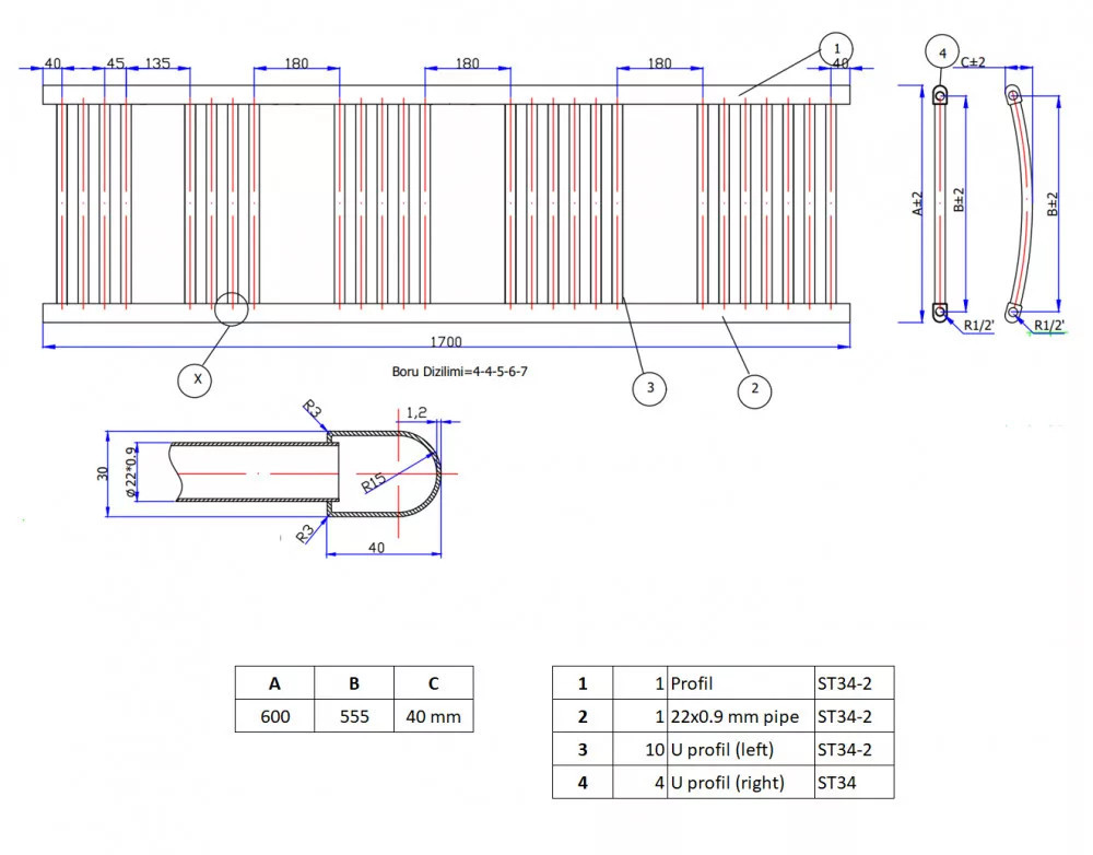Raditor paraméterek:Magasság: 170 cmTeljes szélesség: 60 cmKötéstávolság: 55.5 cmTeljesítmény: 820 WKcal: 776Bekötés: alsó, belső menetes 1/2"Anyaga: acélVízszintes cső keresztmetszet/átmérő: 22 mmFüggőleges cső keresztmetszet/átmérő: 40x30 mm