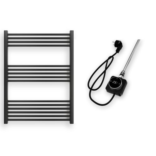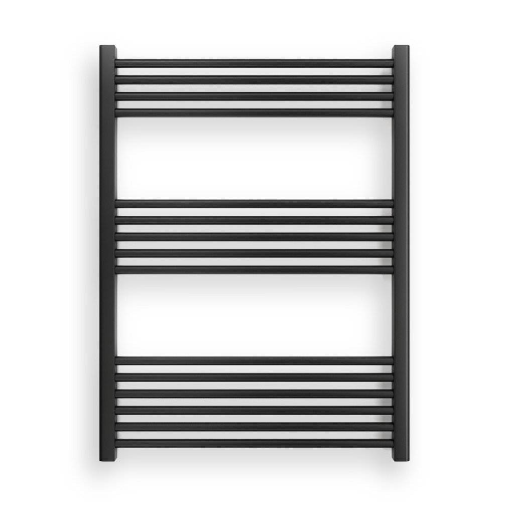 Törölközőszárító radiátor 75 x 100 cm-es méretben, fekete színben. A radiátor tartozéka a rögzítő konzolok és menetes dugók. A Nero Italia fürdőszobai radiátorok kimagasló gyártási minőségben előállított termékek, első osztályú acél felhasználásával készült, precizíós, nagy tartósságú és egyenletes fekete porfestett felülettel.