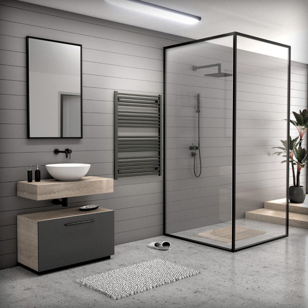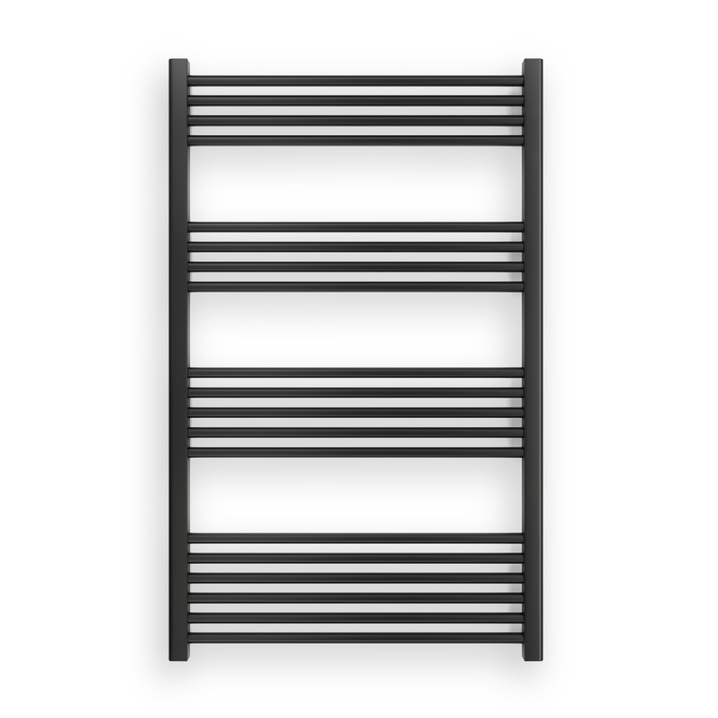 Törölközőszárító radiátor 75 x 120 cm-es méretben, fekete színben. A radiátor tartozéka a rögzítő konzolok és menetes dugók. A Nero Italia fürdőszobai radiátorok kimagasló gyártási minőségben előállított termékek, első osztályú acél felhasználásával készült, precizíós, nagy tartósságú és egyenletes fekete porfestett felülettel.