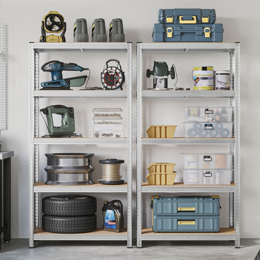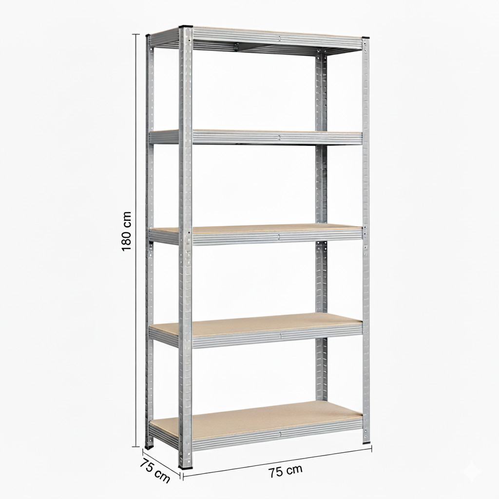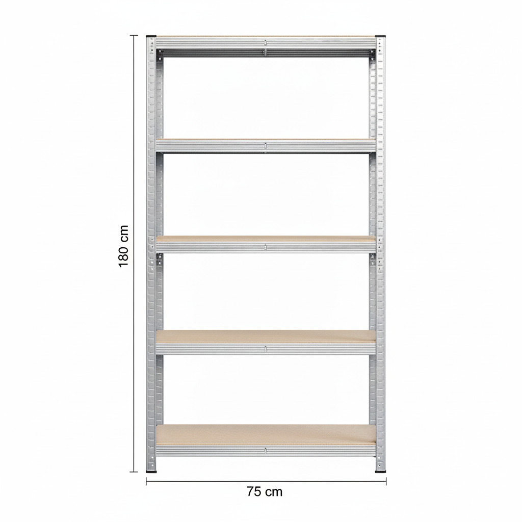 180 x 75 x 40 cm méretű horganyzott acélvázból álló tároló polc, 5 polccal. Csavarozás nélkül, egymásba illeszthető elemekből összeállítható, ahol a polcokat tetszőleges magasságban helyezhetjük el. Ideális tároló polc garázsokban, műhelyekben, kamrákban. Az állvány teherbírása polconként 200 kg egyenletes súlyelosztás esetén. Egyszerű és gyors összeszerelés szerszámok és csavarok nélkül, az egymásba illeszthető rendszernek köszönhetően.
