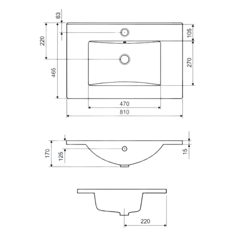 Mosdókagyló méretek:Szélesség: 81 cmMélység (kinyúlás előre a falsíktól): 46 cmMagasság: 17 cmAnyag: kerámia