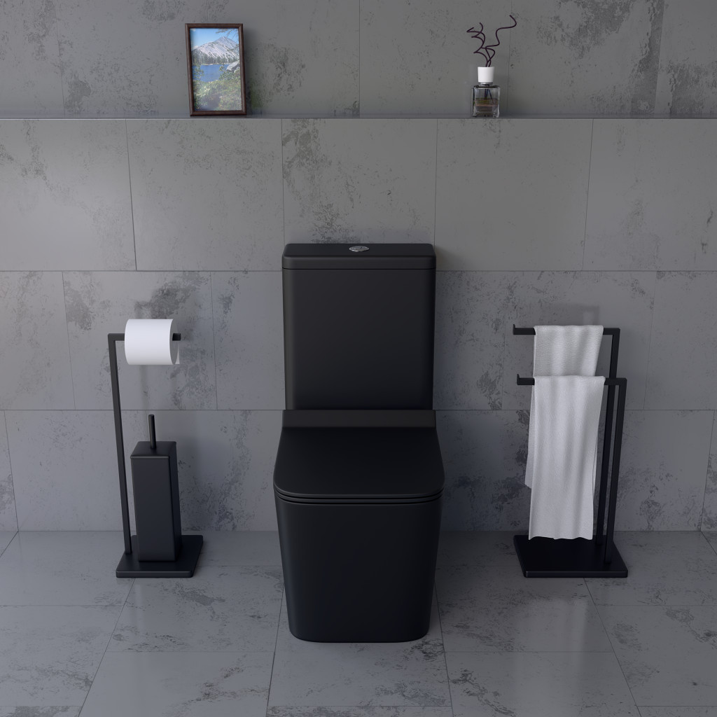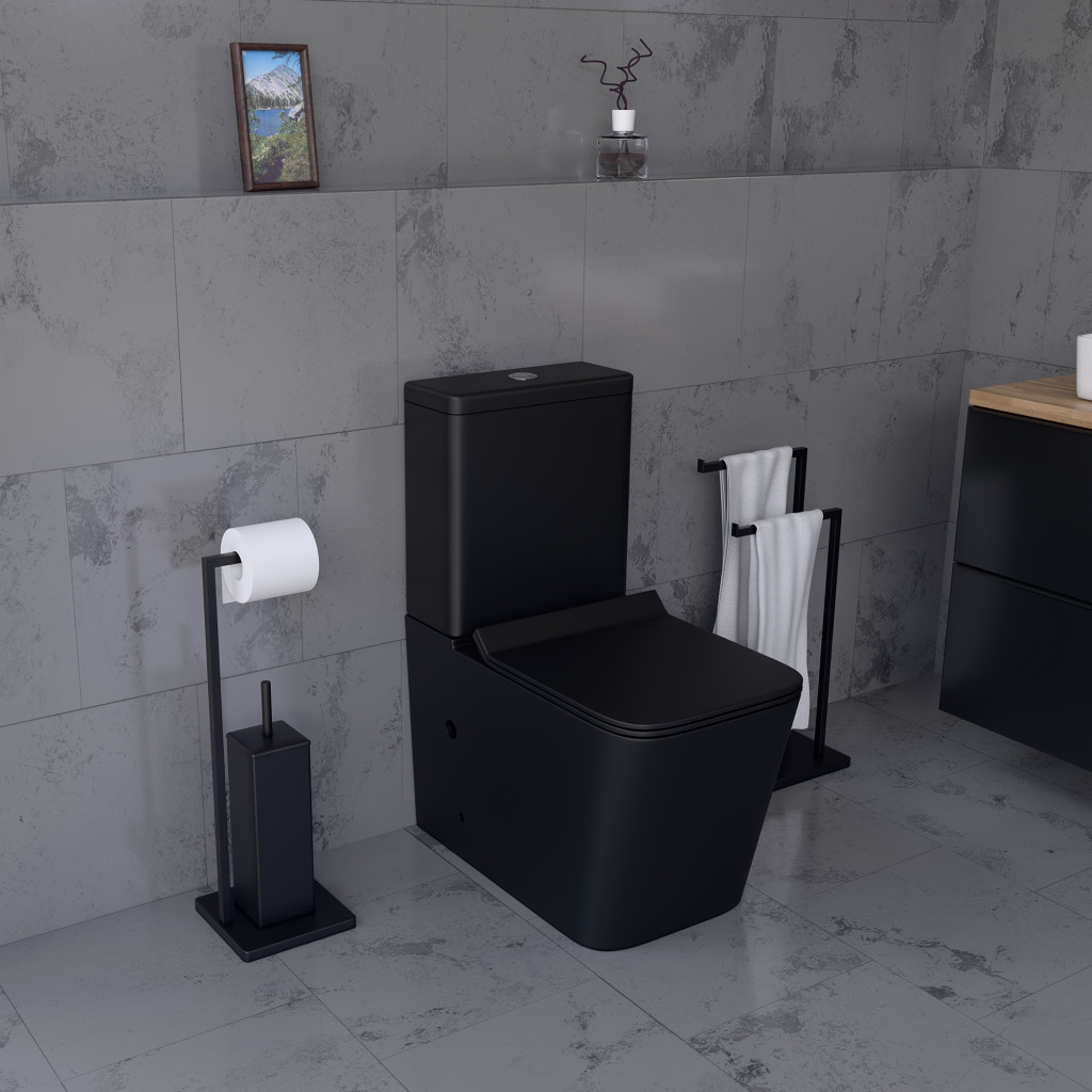 Welland H-7102 alsó/hátsó kifolyású monoblokkos/kompakt WC szett vékonyított ülőkével és antibakteriális bevonattal matt fekete színben. Lassan záródó soft-close duroplast ülkével. A WC kialakítása biztosítja a vízáram hatékony elosztását az öblítés során, ami megakadályozza a szennyeződések felhalmozódását és ezáltal a baktériumok elszaporodását. A WC-ülőke antibakteriális és könnyen tisztítható felülettel rendelkezik, a gyorskioldó rendszer pedig lehetővé teszi az ülőke gyors eltávolítását a WC alaposabb tisztítása érdekében. Minimál stílusú, modern formatervezés, a WC csésze és tartály egységes, esztétikus eleme a helyiségnek.