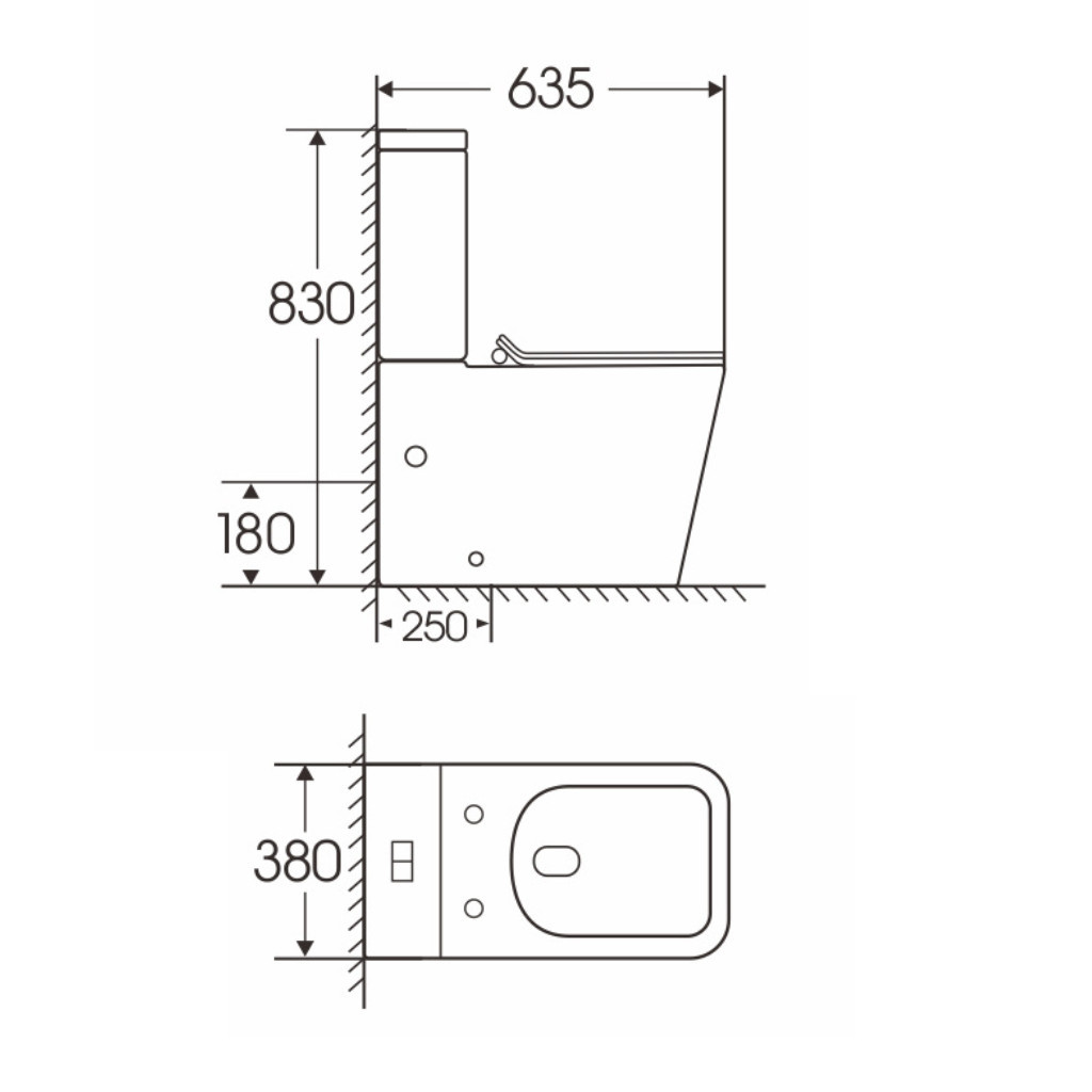 Hosszúság (tartály + WC együttesen): 63.5 cmSzélesség: 38 cmMagasság: 83 cmAntibakteriális bevonat: IgenÜlőke típusa: Lassan záródó (soft-close), duroplast