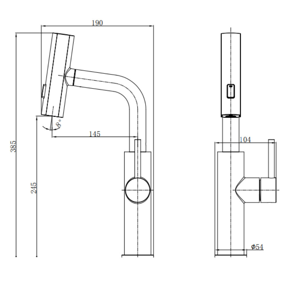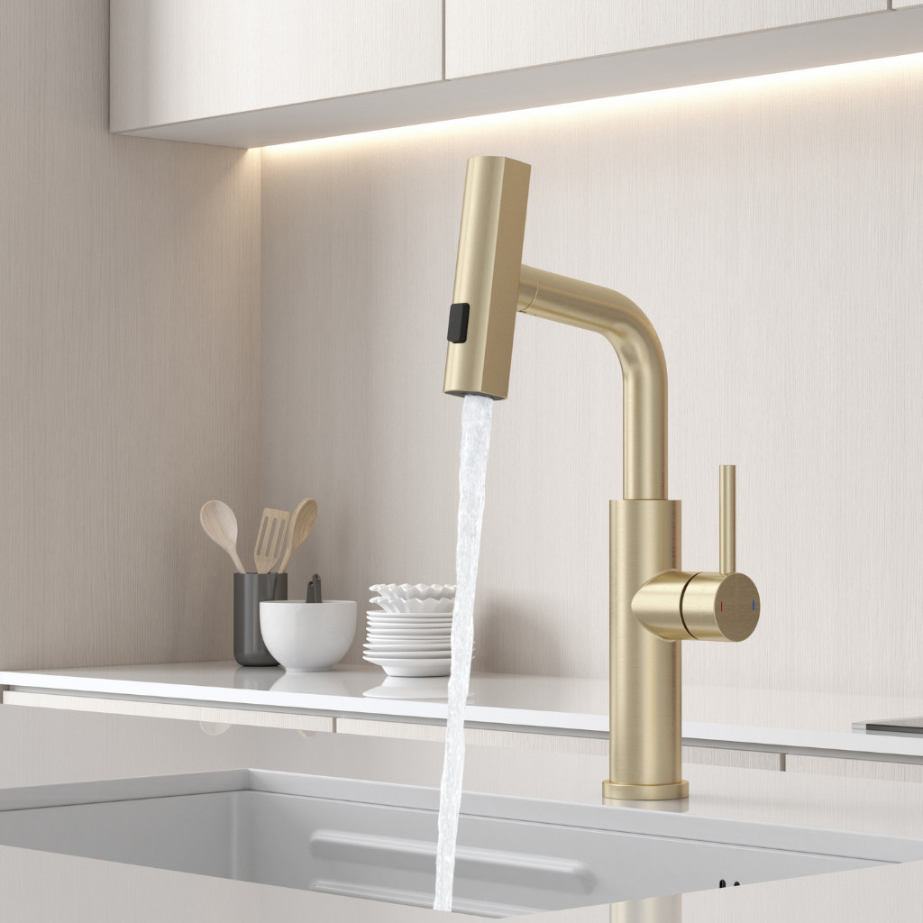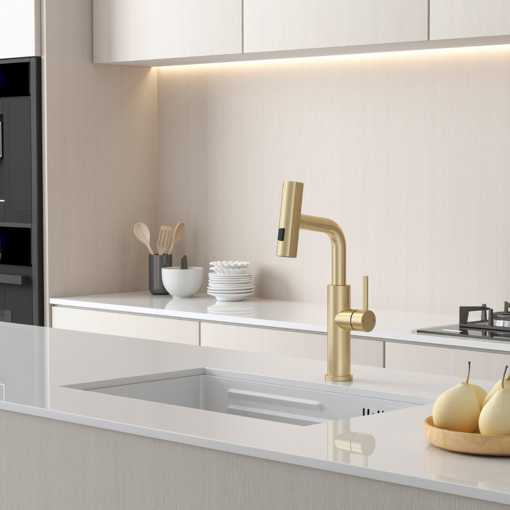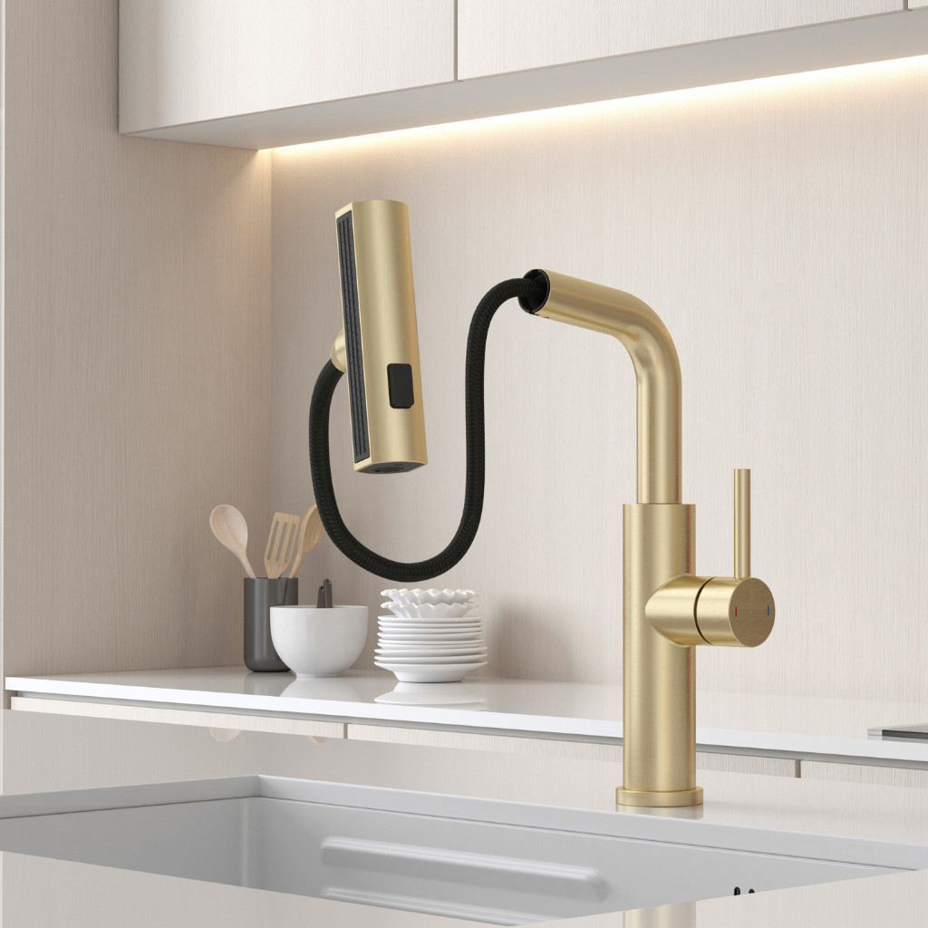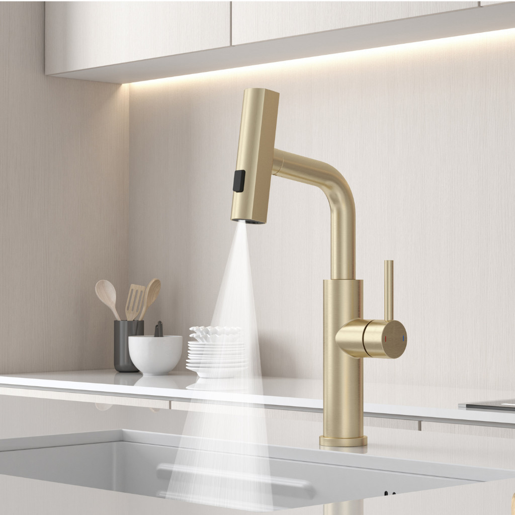 Kíhúzható zuhanyfej: a víz egy kihúzható csövön keresztül áramlik, így a csaptelep fej 50 cm hosszúságig kihúzható.