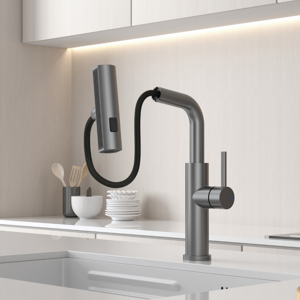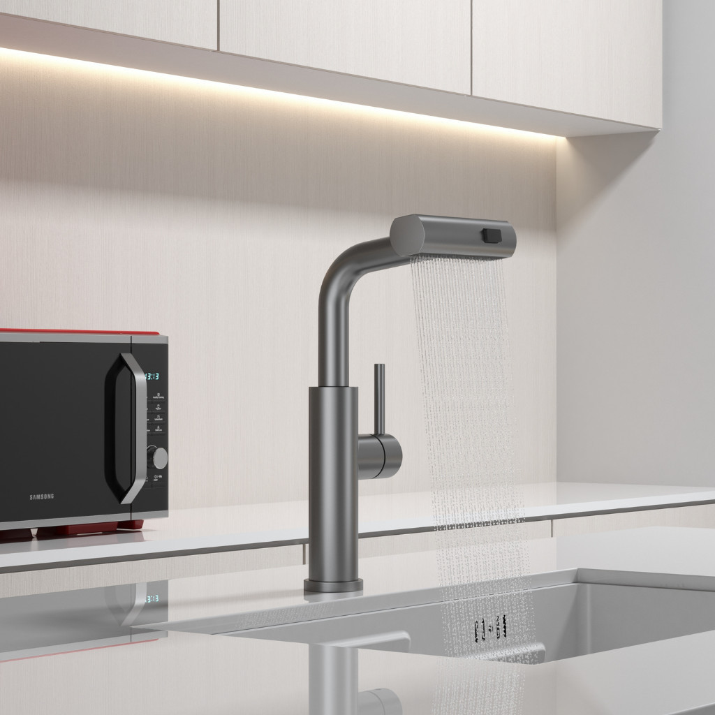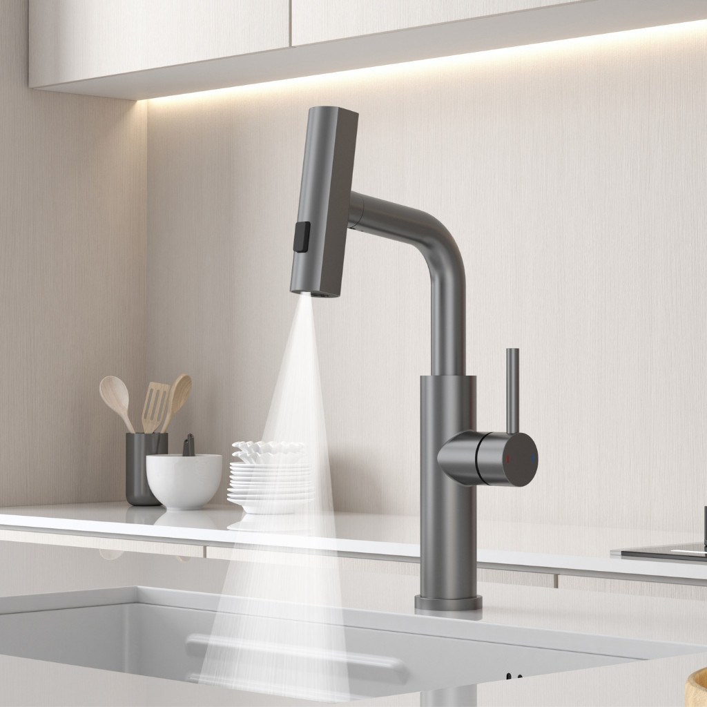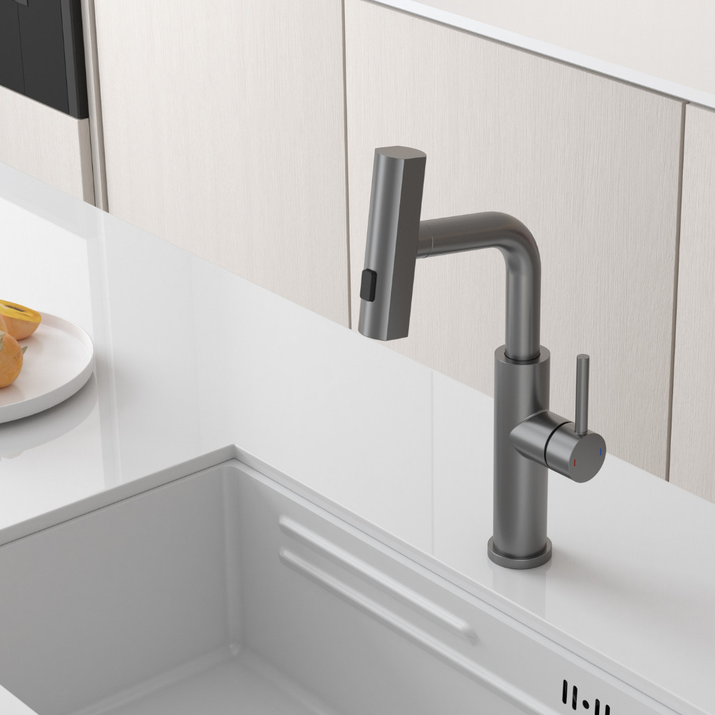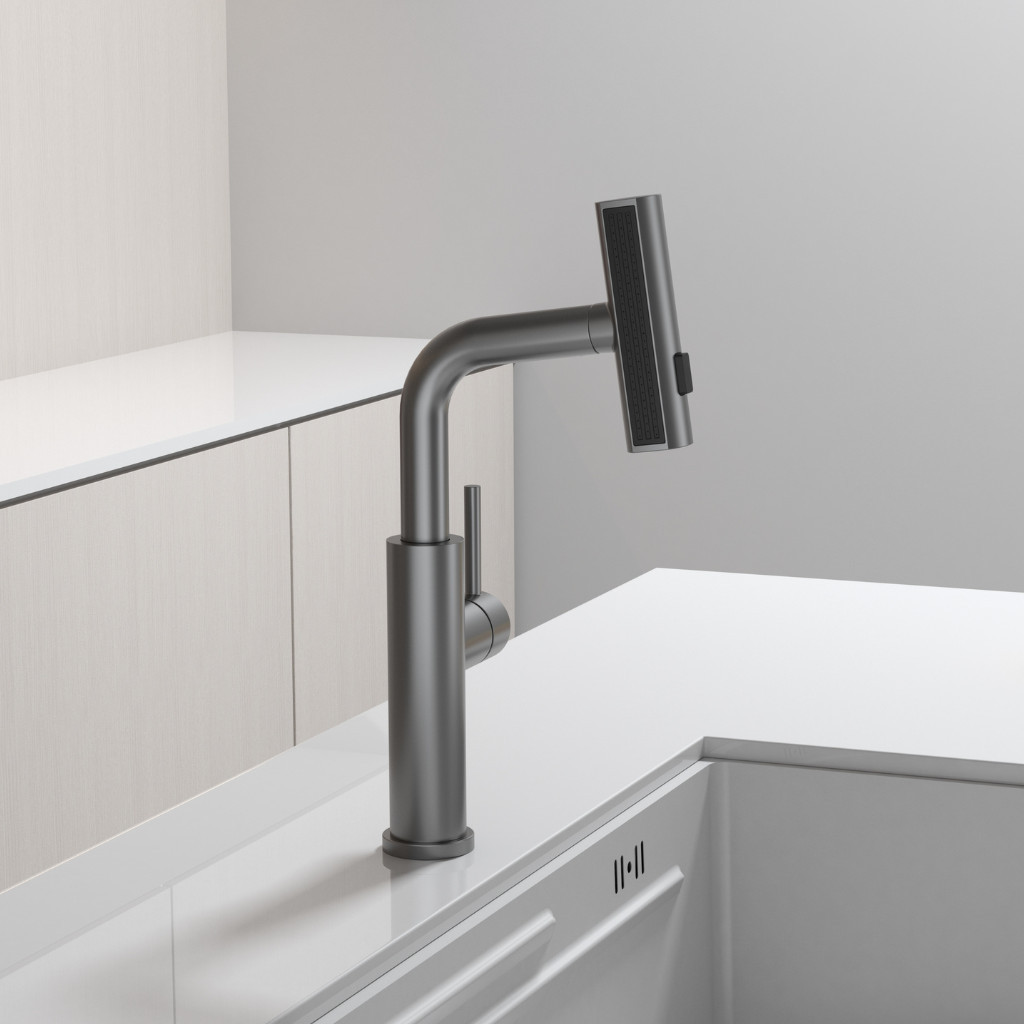 Kíhúzható zuhanyfej: a víz egy kihúzható csövön keresztül áramlik, így a csaptelep fej 50 cm hosszúságig kihúzható.