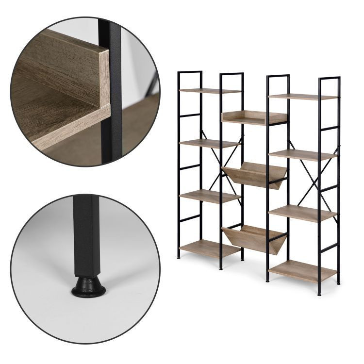 Intenso Compact univerzális tároló polc / könyvespolc. 3 részre osztott polcrendszer, tökéletes megoldás irodába vagy nappali helyiségekbe is. A fekete fém váz és a tölgy árnyalatú bútorlap modern, esztétikus látványt nyújt. Polconként 10 kg teherbírással. Praktikus bútor bármilyen helyiségbe. Anyaga rozsdamentes porfestett acél és nagy tartósságú E1 MDF bútorlap (15 mm) ABS élfóliákkal. Rendelhető a sorozat további termékeivel is.