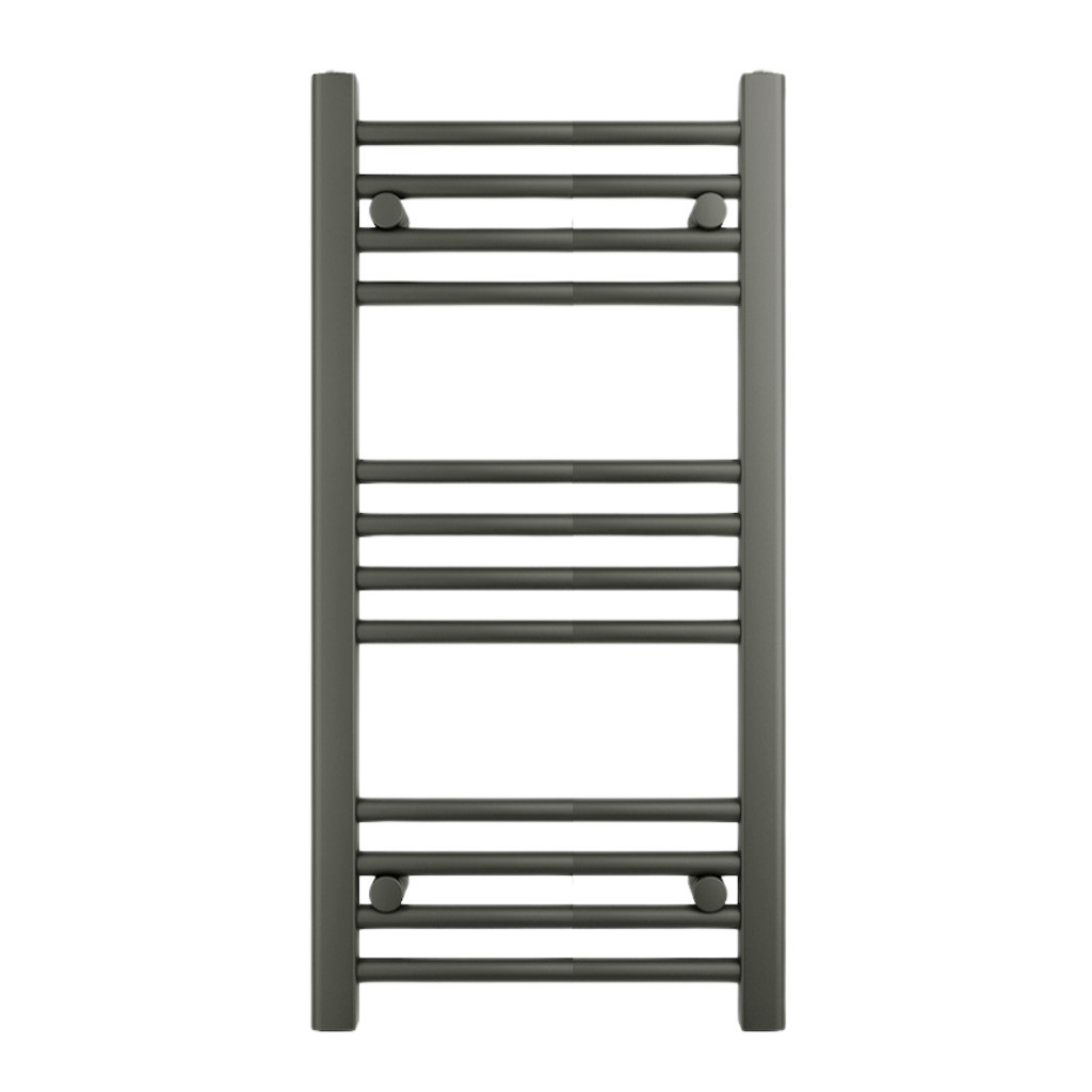 Törölközőszárító radiátor 40 x 80 cm-es méretben, gunmetal (grafitszürke) színben. A radiátor tartozéka a 3 db rögzítő konzol és a menetes dugók. A Nero Italia fürdőszobai radiátorok kimagasló gyártási minőségben előállított termékek, első osztályú acél felhasználásával készült, precizíós, nagy tartósságú és egyenletes fekete porfestett felülettel. A fűtőtest használható elektromos fűtőbetéttel is.