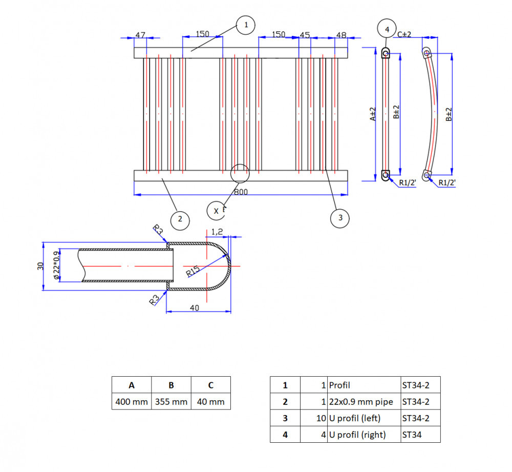 Magasság: 80 cmTeljes szélesség: 40 cmKötéstávolság: 35.5 cmTeljesítmény: 280WKcal: 261Bekötés: alsó, belső menetes 1/2"Anyaga: acélTöltővíz mennyiség: 2.84LVízszintes csövek száma: 12Csőkiosztás: 4-4-4Vízszintes cső keresztmetszet/átmérő: 22 mmFüggőleges cső keresztmetszet/átmérő: 40x30 mm