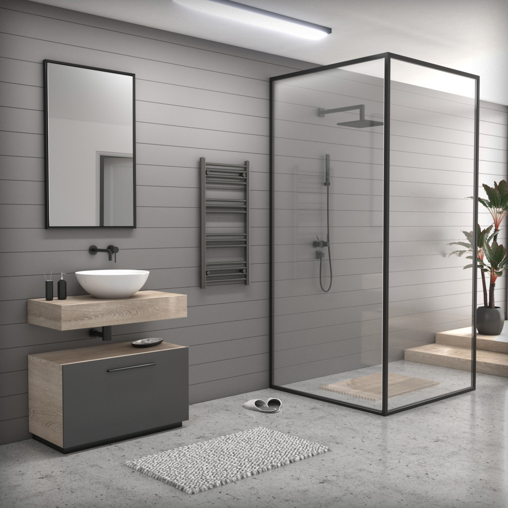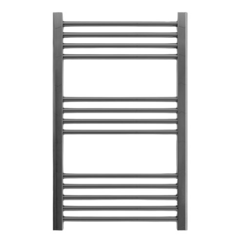 Törölközőszárító radiátor 50 x 80 cm-es méretben, gunmetal / grafitszürke színben. A radiátor tartozéka a 3 db rögzítő konzol és a menetes dugók. A Nero Italia fürdőszobai radiátorok kimagasló gyártási minőségben előállított termékek, első osztályú acél felhasználásával készült, precizíós, nagy tartósságú és egyenletes fekete porfestett felülettel. A fűtőtest használható elektromos fűtőbetéttel is.