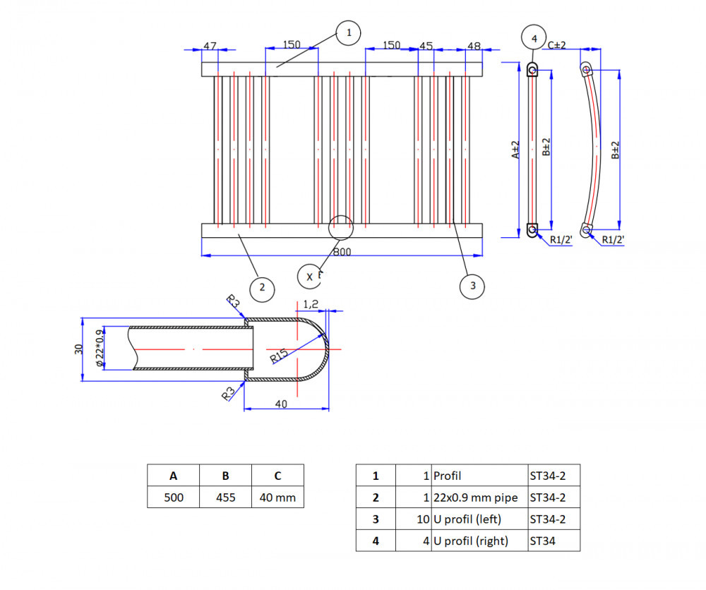 Magasság: 80 cmTeljes szélesség: 50 cmKötéstávolság: 45.5 cmTeljesítmény: 338WKcal: 298Bekötés: alsó, belső menetes 1/2"Anyaga: acélTöltővíz mennyiség: 3.24LVízszintes csövek száma: 12Csőkiosztás: 4-4-4Vízszintes cső keresztmetszet/átmérő: 22 mmFüggőleges cső keresztmetszet/átmérő: 40x30 mm