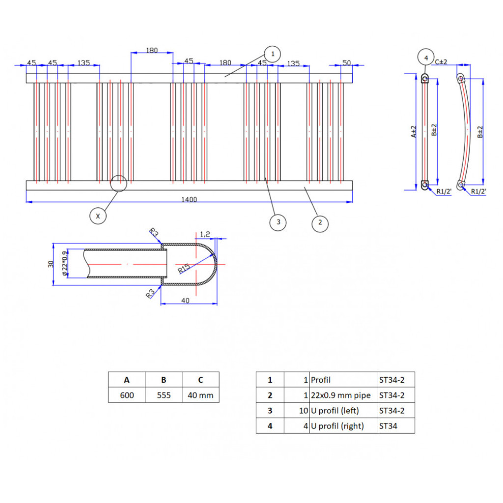Paraméterek: Magasság: 140 cmTeljes szélesség: 60 cmKötéstávolság: 55.5 cmTeljesítmény: 663 WKcal: 621Bekötés: alsó, belső menetes 1/2"Anyaga: acélTöltővíz mennyiség: 6.68LVízszintes cső keresztmetszet/átmérő: 22 mmFüggőleges cső keresztmetszet/átmérő: 40x30 mm