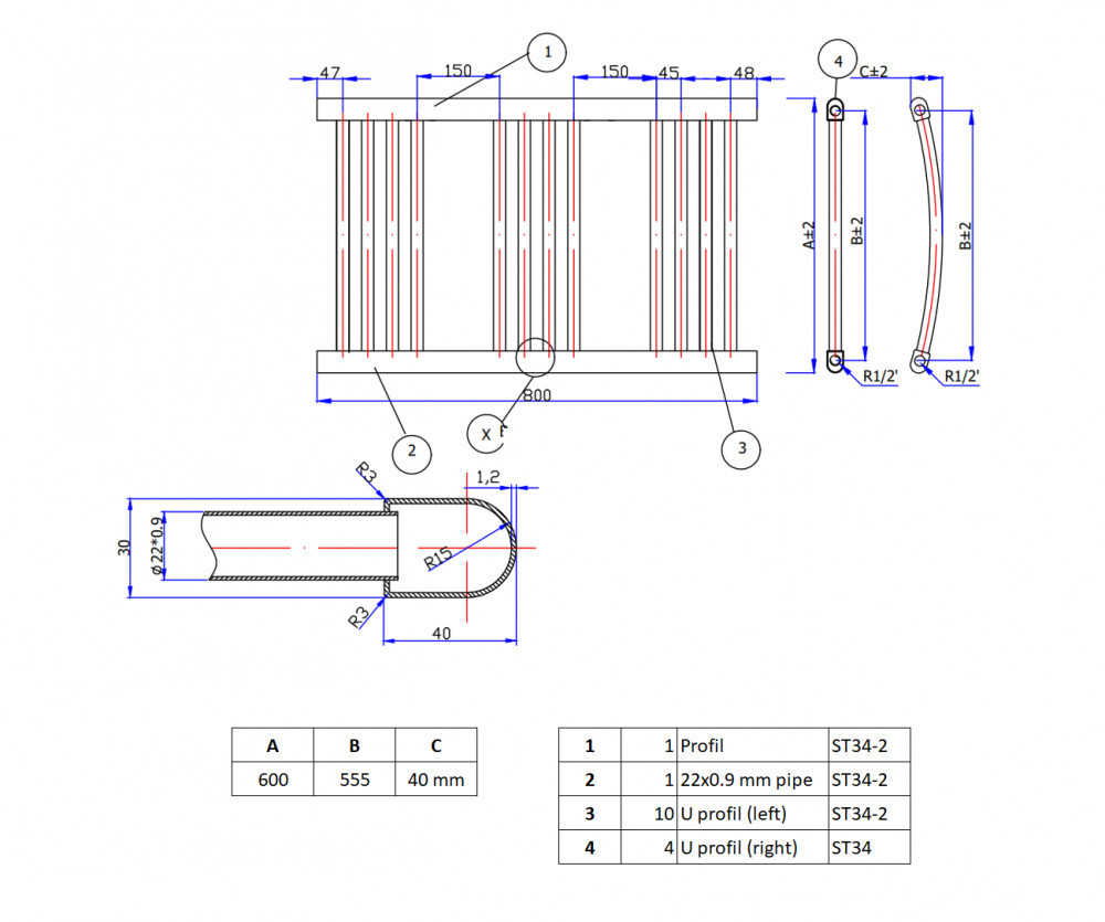 Magasság: 80 cmTeljes szélesség: 60 cmKötéstávolság: 55.5 cmTeljesítmény: 394WKcal: 349Bekötés: alsó, belső menetes 1/2"Anyaga: acélTöltővíz mennyiség: 3.64LVízszintes cső keresztmetszet/átmérő: 22 mmFüggőleges cső keresztmetszet/átmérő: 40x30 mm