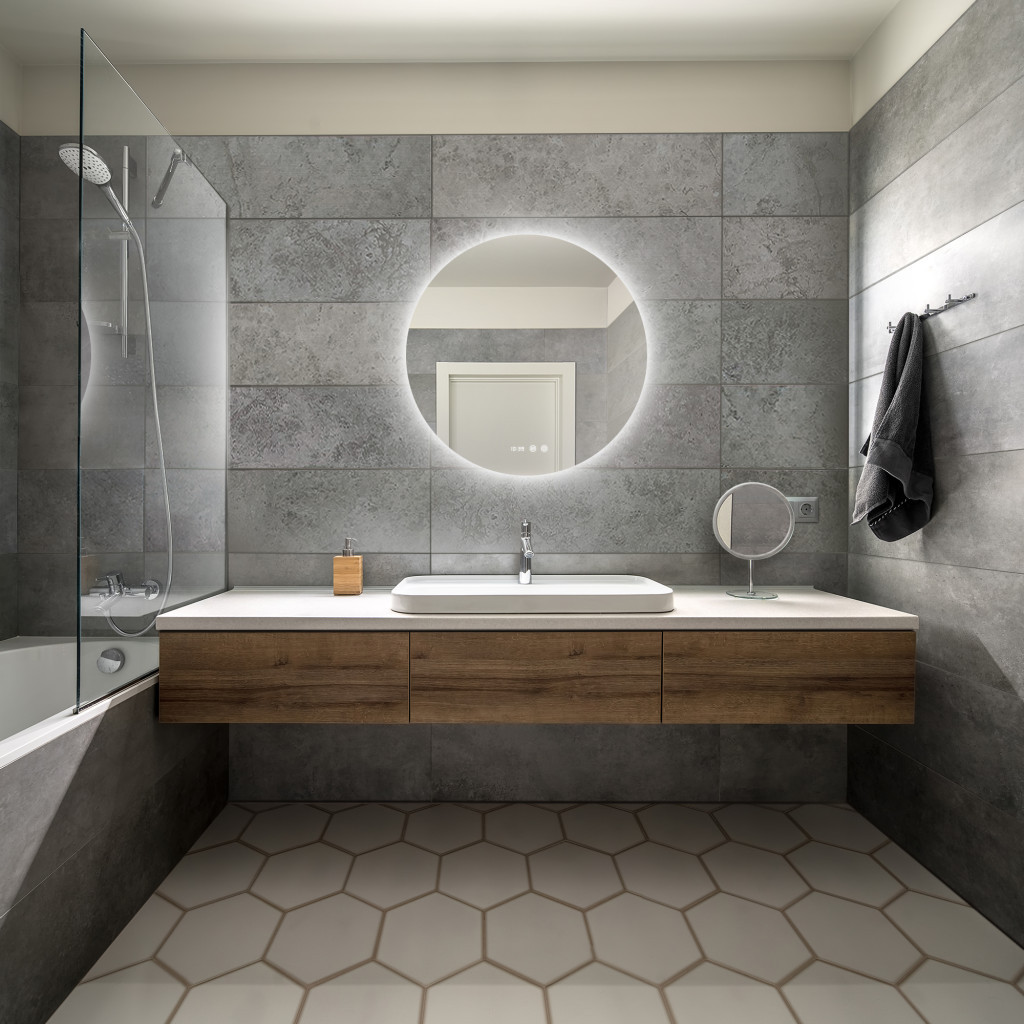 Digitális óra: A tükör felületén egy digitális óra található, ami praktikus a reggeli készülődés során. Az óra a tükörlapon külön keret nélkül jelenik meg, ami tovább fokozza az igényes esztétikai hatást.