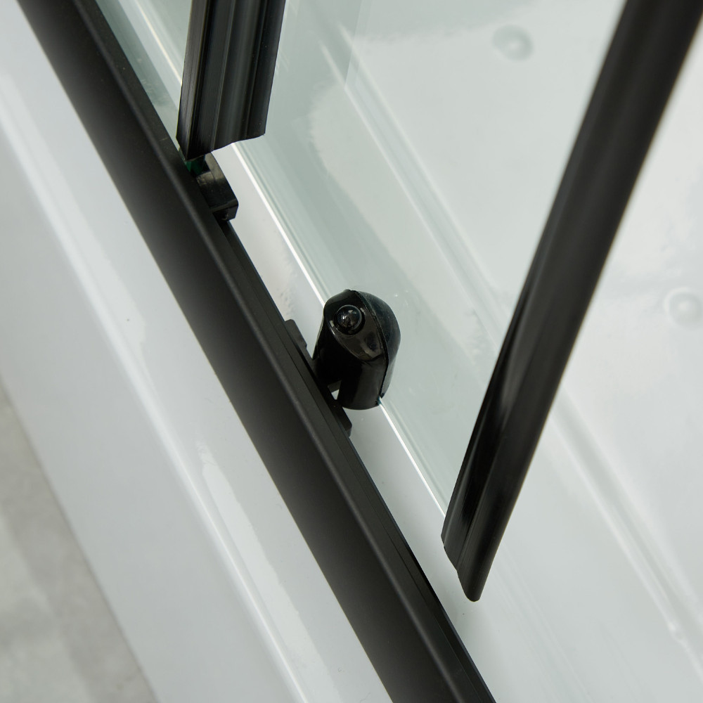 Welland SD-100 prémium zuhanyajtó elhúzható görgős ajtóval. Mágneses ajtózárral ellátott, könnyen becsukható és nyitható, precízen illeszkedő, elhúzható ajtó. Szögletes kialakítás, az ajtó telepíthető zuhanytálcára vagy közvetlenül a padlóra is. Masszív, 6 mm vastag biztonsági edzett üveg, ergonómikus fogantyú, fekete alumínium profilok. A dupla görgőkön futó tolóajtó könnyű nyitást - zárást, valamint kényelmes ki-és beszállást tesznek lehetővé, mindezt extra helyigény nélkül.