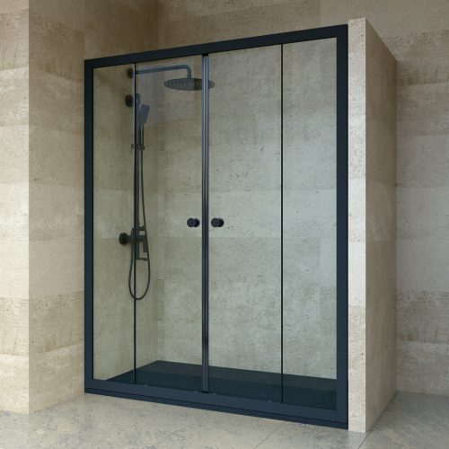Welland SD-150 zuhanyajtó elhúzható görgős ajtókkal. Mágneses ajtózárral ellátott, könnyen becsukható és nyitható, precízen illeszkedő, elhúzható ajtók. Az ajtó telepíthető zuhanytálcára vagy közvetlenül a padlóra is. Masszív, 6 mm vastag biztonsági edzett üveg, ergonómikus fogantyú, fekete alumínium profilok. A dupla görgőkön futó, két irányba nyitható tolóajtók könnyű nyitást - zárást, valamint kényelmes ki-és beszállást tesznek lehetővé, mindezt extra helyigény nélkül.