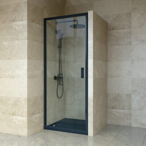 Welland SS-80 zuhanyajtó kifelé nyíló ajtóval. Mágneses ajtózárral ellátott, könnyen becsukható és nyitható, precízen illeszkedő ajtó, könnyű nyitást - zárást, valamint kényelmes ki-és beszállást kínál. A zuhanyajtó telepíthető zuhanytálcára vagy közvetlenül a padlóra is. Masszív, 6 mm vastag biztonsági edzett üveg, ergonómikus fogantyú, fekete alumínium profilok.