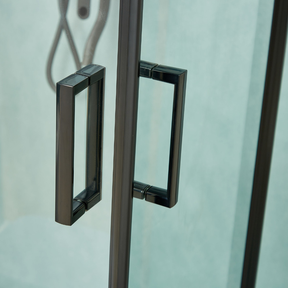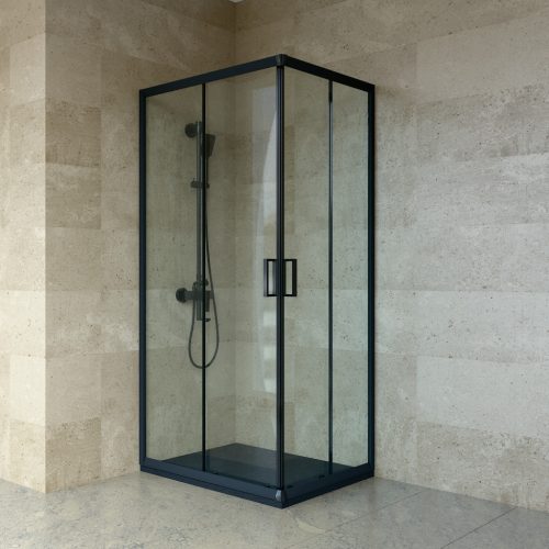Welland RE-7090 zuhanykabin elhúzható görgős ajtóval. Mágneses ajtózárral ellátott, könnyen becsukható és nyitható, precízen illeszkedő, elhúzható ajtó a zuhanykabin hosszabb oldalán. Téglalap alakú kialakítás, a zuhanykabin telepíthető zuhanytálcára vagy közvetlenül a padlóra is. Masszív, 6 mm vastag biztonsági edzett üveg, ergonómikus fogantyú, tartós elektrosztatikus festéssel készült fekete profilok. A dupla görgőkön futó tolóajtók könnyű nyitást - zárást, valamint kényelmes ki-és beszállást tesznek lehetővé, mindezt extra helyigény nélkül.