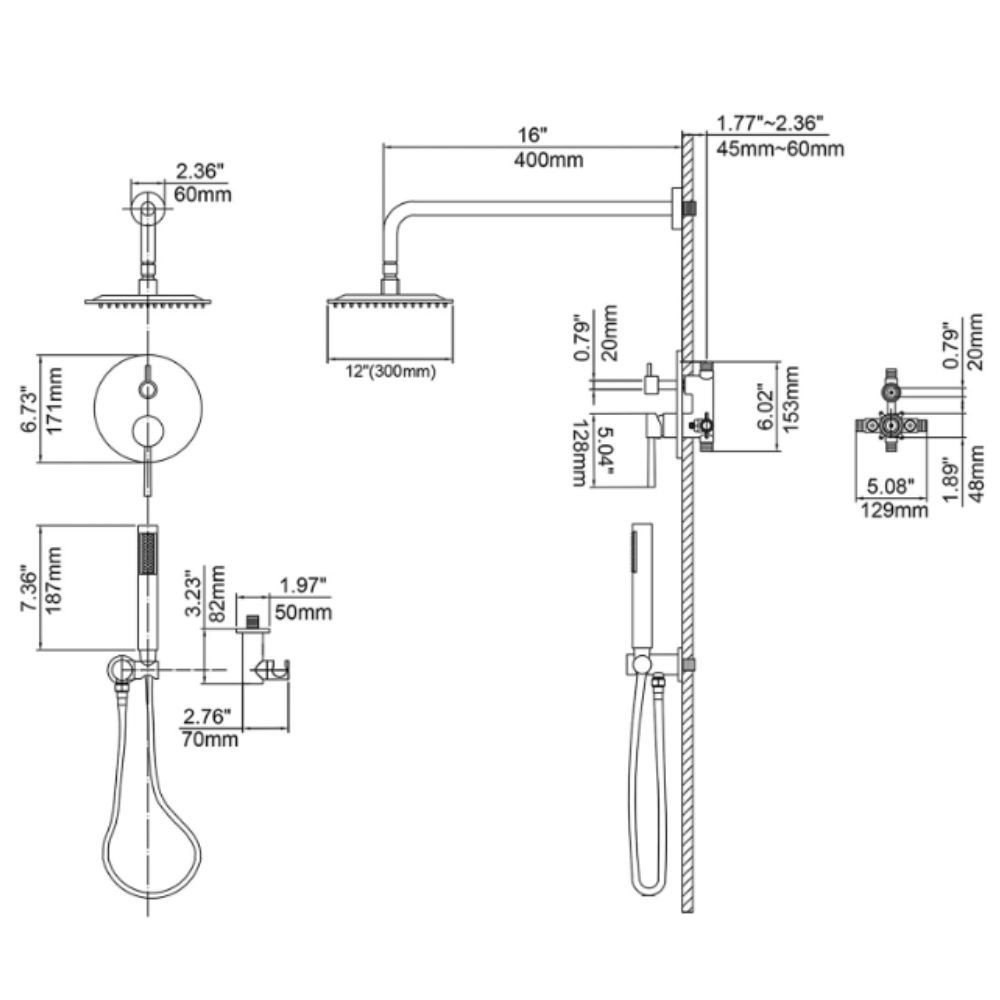zuhany csaptelep (falsík alatti kerámia fejjel)37 cm-es fali zuhanykar20x20 cm-es esőztető, ultra slim, rozsdamentes acélból, krómbevonattal, anticalc fúvókákkalSárgaréz csatlakozás150 cm hosszú fém zuhanytömlő