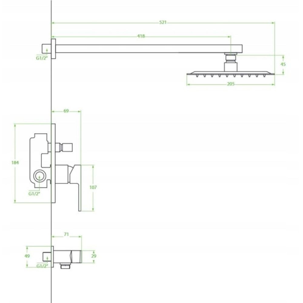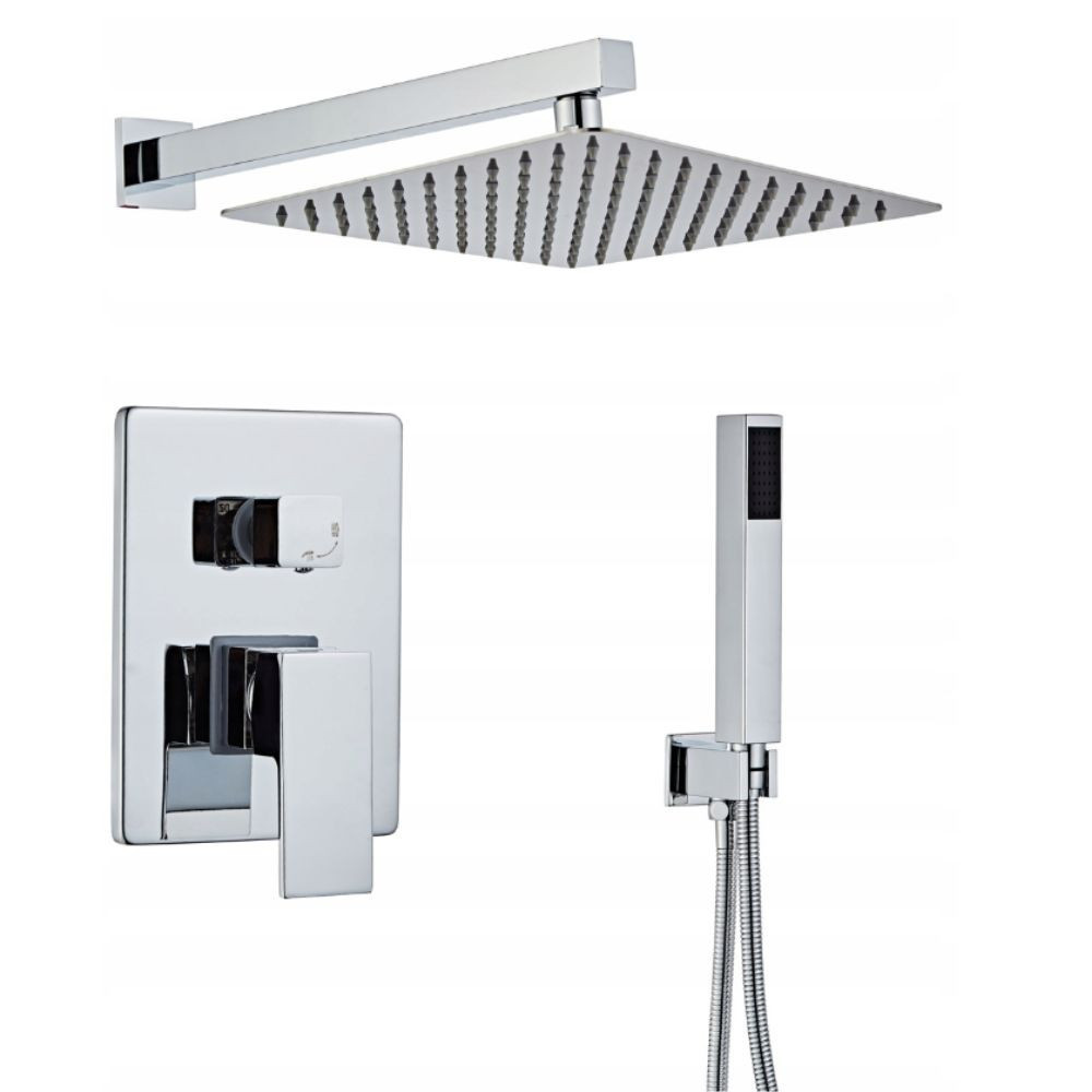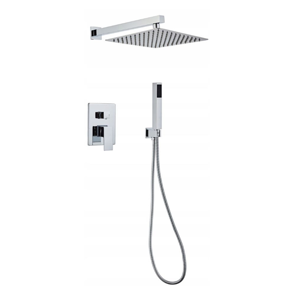 zuhany csaptelep (falsík alatti kerámia fejjel)37 cm-es fali zuhanykar20x20 cm-es esőztető, ultra slim, rozsdamentes acélból, krómbevonattal, anticalc fúvókákkalSárgaréz csatlakozás150 cm hosszú fém zuhanytömlő